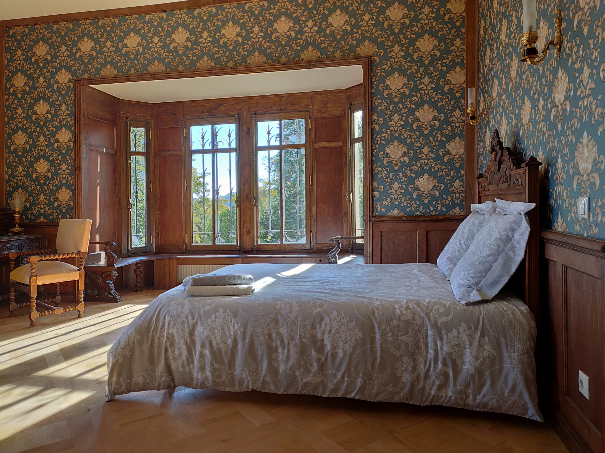 La décoration intérieure de style ancien – hauts plafonds, stucs, fresques, tapisseries, peintures et meubles, vous permettent de vous immerger dans l’atmosphère de l’époque, sans pour autant vous priver des commodités modernes.
